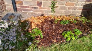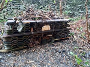 Two areas at the front of church have been turned into small gardens. They are planted with pollinator friendly perennials, with the divisions taken from a member’s garden. We also have areas left to grow wild – these have dead branches, stick piles, leaves and stones providing habitat for insects. We have one area, which now contains a bug village!