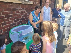 Selected images below show; our litter picking team, one of our bug hotels, our little fishes releasing butterflies and our pollinator friendly perennials.